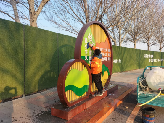 大家分工合作,各尽其职,对广场附近卫生死角进行清理,对乱停车辆进行劝导,认真擦洗景观广告、道路围栏、垃圾桶等,努力打造一个干净、整洁、文明、舒心的站前广场环境,继续为文明城市创建工作贡献力量。