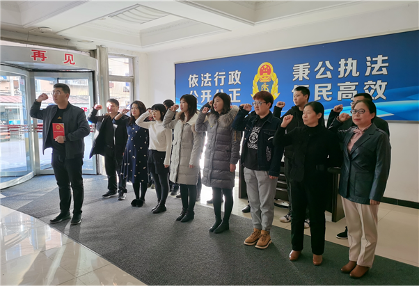 开展宣誓活动,维护宪法权威。宣誓仪式上,全体人员列队整齐,领誓人左手抚按《宪法》,全体人员右手握拳,掷地有声,庄严宣誓:“誓忠于中华人民共和国宪法,维护宪法权威,履行法定职责,忠于祖国、忠于人民,恪尽职守、廉洁奉公,接受人民监督,为建设富强民主文明和谐美丽的社会主义现代化强国努力奋斗!”,进一步提高了干部职工贯彻落实全面依法治国、遵守宪法、维护稳定、应对风险的能力。